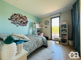 Idéalement conçue, De la ville aux champs distribue les espaces autour d’un couloir central. En face du salon, un bureau de 8,5m2 vous permettra de travailler en toute quiétude, au centre de la maison mais à l’écart des passages. A ses côtés, une première chambre de plus de 9m2, avec sa salle d’eau attenante conviendra particulièrement à un grand adolescent par sa proximité avec le vestibule. De l’autre côté du bureau, deux chambres de 11,42m2 et de 13,36m2 se partagent une grande salle d’eau de plus de 7 m2 avec deux accès séparés. En face, la suite parentale combine chambre de 11,55m2, dressing attenant de plus de 4m2 et salle d’eau de 3,44m2. Toutes les pièces de nuit disposent d’une porte fenêtre vers l'extérieur et de parquet au sol, et les pièces d’eau de carrelages assortis.