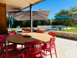 Point d’orgue De la ville aux champs, la piscine de 3,5 m sur 8, construite en 2022, s’expose dans la continuité de la terrasse. Avec ses vastes margelles de pierre pour accueillir transats et bains de soleil, elle attirera amis des enfants et des adultes pour des journées de vacances aveyronnaises. Imaginez-vous à table ou dans votre salon de jardin, face à cette eau bleue qui n’attend que votre désir pour vous ouvrir ses bras de fraîcheur….Détail pratique, sa couverture automatisée la protègera l’hiver ou en cas de pluie. La piscine est entourée d’un terrain gazonné plat, idéal pour y disposer des jeux d’extérieur. En matière de végétation, des arbres côtoient des haies pour plus d’intimité, et des plantes grasses faciles d’entretien confortent la modernité des lieux. Située en limite de lotissement, De la ville aux champs est entourée de terrains cultivés et d’un chemin de balade. D’ailleurs la création d’un accès direct à la promenade est d’ores et déjà prévu pour les futurs occupants.